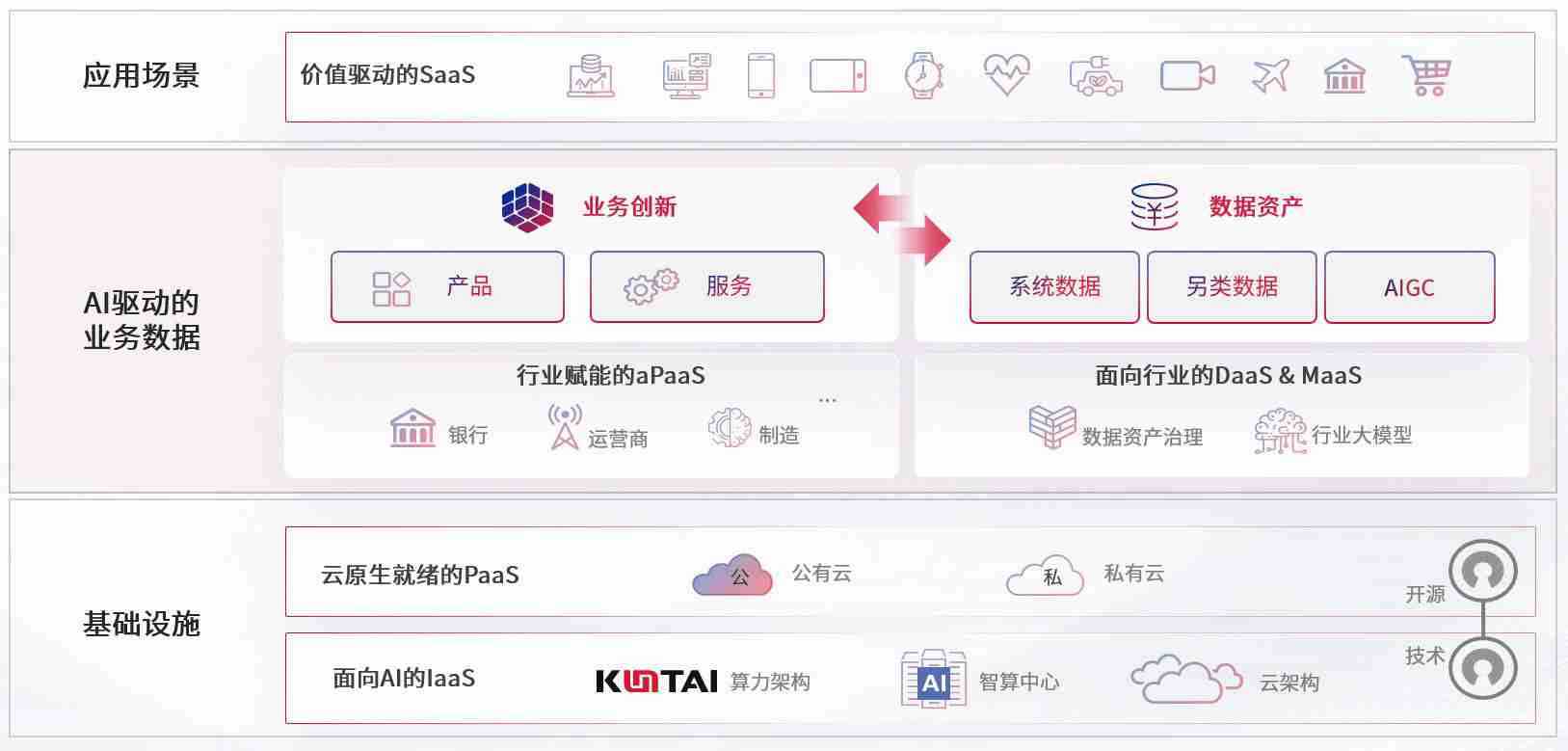数字时代,,,,围绕企业数字化转型的关键要素,,尊龙z6数码开创性的提出数云融合战略和技术体系框架,,着力在云原生、、数字原生、、、、AI原生和信创产业上架构产品和服务能力,,,为处在不同数字化转型阶段的快消零售、、汽车、、金融、、医疗、、政企、、教育、、运营商等行业客户提供泛在的敏捷IT能力和融合的数据驱动能力,,,,构建跨界融合创新的数字业务场景和新业务模式,,助力企业级客户建立面向未来的核心能力和竞争优势,,,,全面推动社会的数字化、、、、智能化转型升级。。。。