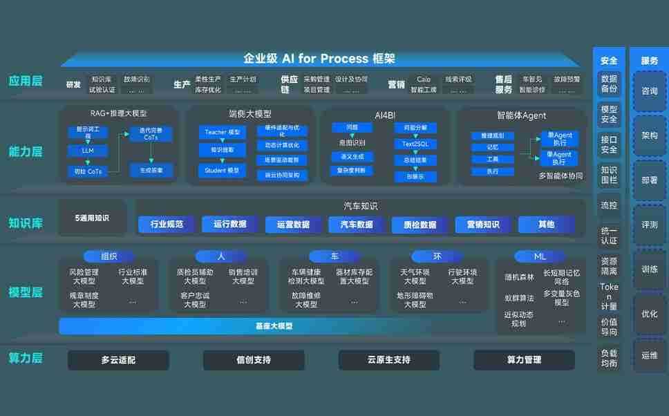 端到端的一站式AI工作空间深度融合了从企业战略规划到日常经营的全流程业务板块,,,,定向解决车企内部领域多、、、部门多、、、链条长、、、、场景碎片化等难题,,支持车企快速构建以AI为核心的生产力写作体系,,,,实现任务执行与AI能力的无缝集成与交互