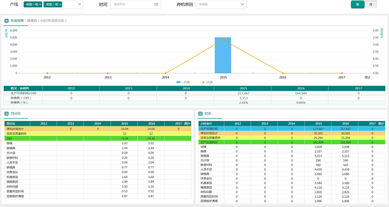 长期使用OEE报表,,,,可以轻松找到影响生产效率的一些瓶颈,,,进行改进和跟踪。。